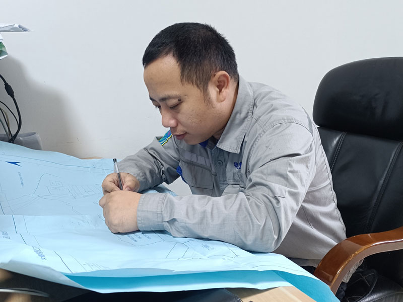 機關黨支部黨員、設備工程部三級干部許真正在認真核對工程施工圖紙。施工圖紙是工程建設的基礎,是編制工程施工計劃、材料采購計劃、勞動力組織計劃等的依據,圖紙審核是工程項目的作業指導書,細致的核對能有效避免工程偏差,是優質工程建設的關鍵性工作。